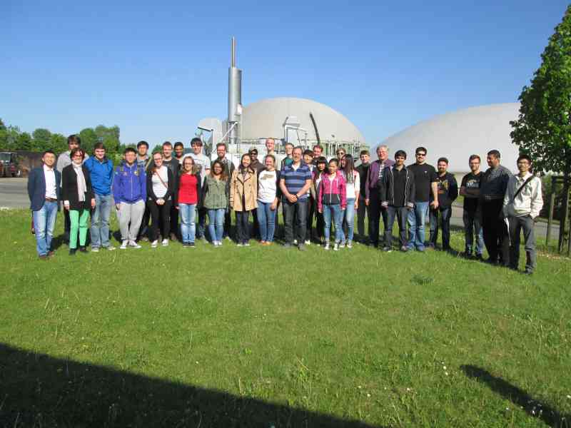 Gemeinsam mit ihren betreuenden Professoren Dr. Axel Bleckwedel und Dr. Wolf-Peter Buchwald zeigten internationale Gaststudenten aus den Bereichen Elektrotechnik und Maschinenbau großes Interesse an der Entstehung der Biogasanlage, Ihrer technischen Ausstattung und an den aktuellen Entwicklungen im Bioenergiedorf Jühnde.
